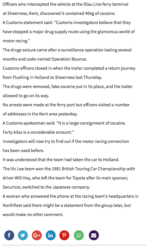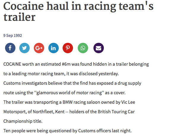 - There was also a completely unconnected case taking place just 5 months prior to my arrest. That case involved a British racing team run by a Vic Lee. Vic Lee had pleaded guilty to importing £6M of cocaine in his Teams racing transporter. The Vic lee case had taken place in South London, where my trial was to be scheduled.