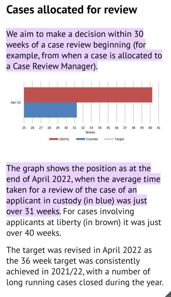 Case Review Time: As at July 2022 the CCRC are still publicly boasting that the review time for cases is between 31 to 40 weeks and even quicker if there are special reasons, such as the health of the person applying, as in my case…