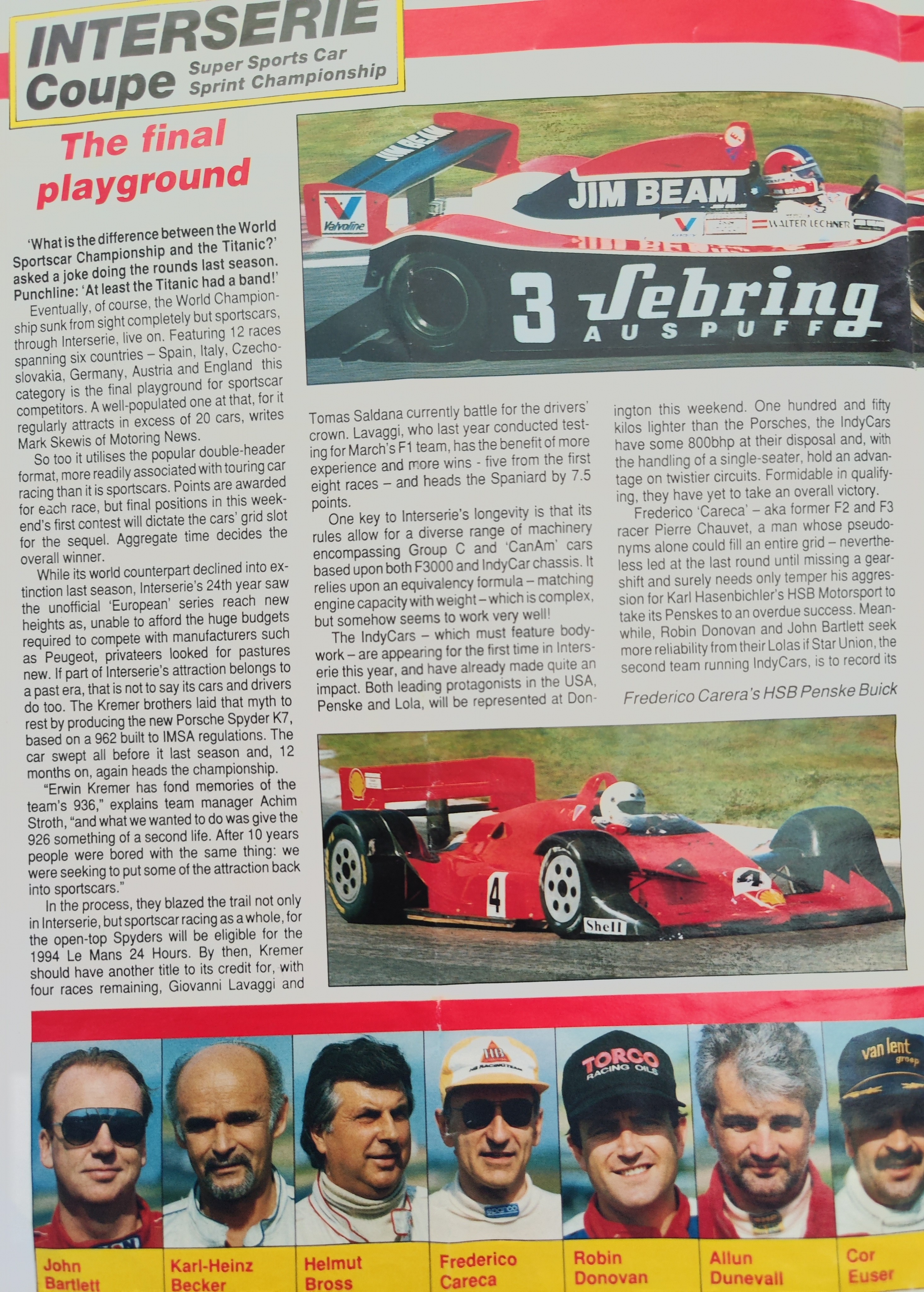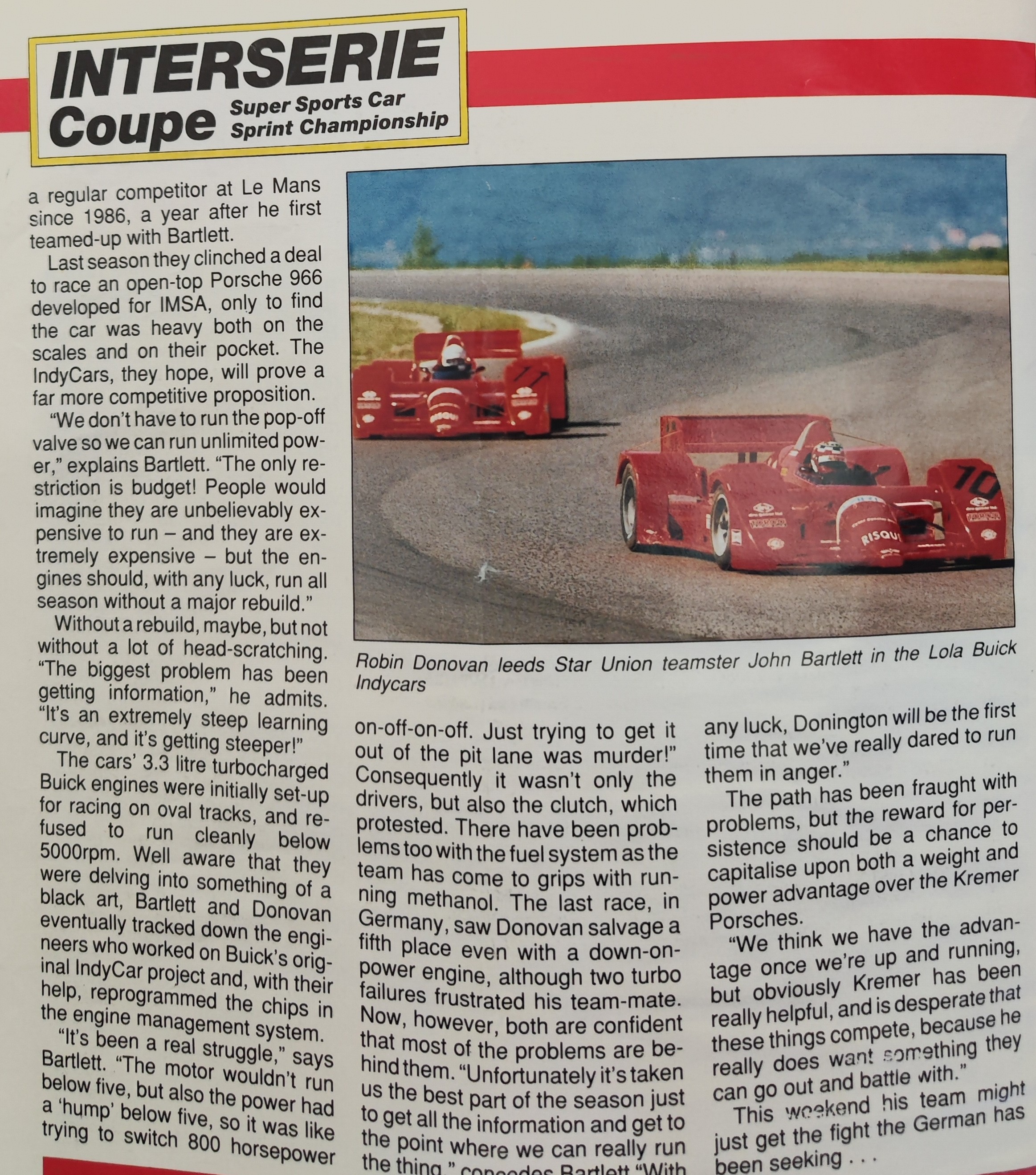 Bartlett’s Team, Grand Prix Racing Promotions, succumbed to the UK recession in 1991[22], but against legal and medical advice[23] and exacerbating his legal problems, he returned in 1993 for a final season, racing the Lola T89 Buick IndyCar for the Star Union Team in Interserie