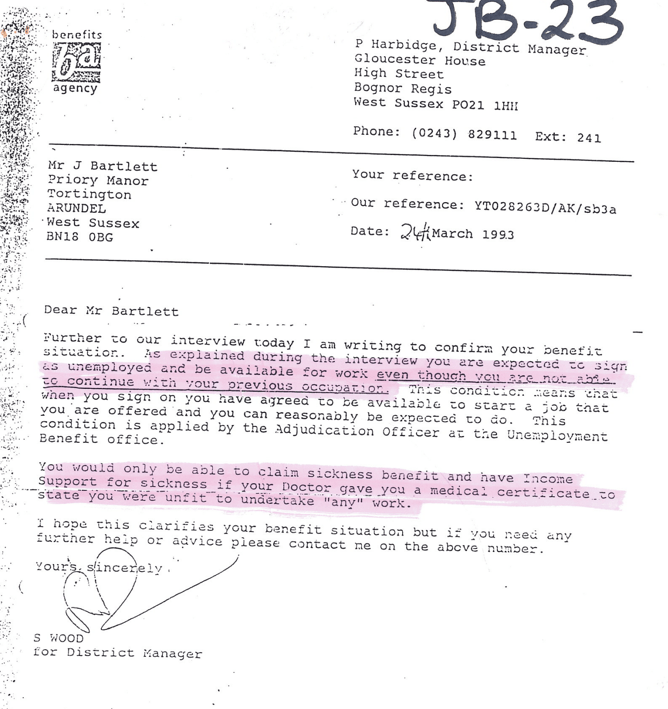 Benefits Agency instructed me to look for “alternative work” due to being injured. Share this: Click to share on X (Opens in new window) X Click to share on Facebook (Opens in new window) Facebook Click to email a link to a friend (Opens in new window) Email Like Loading...