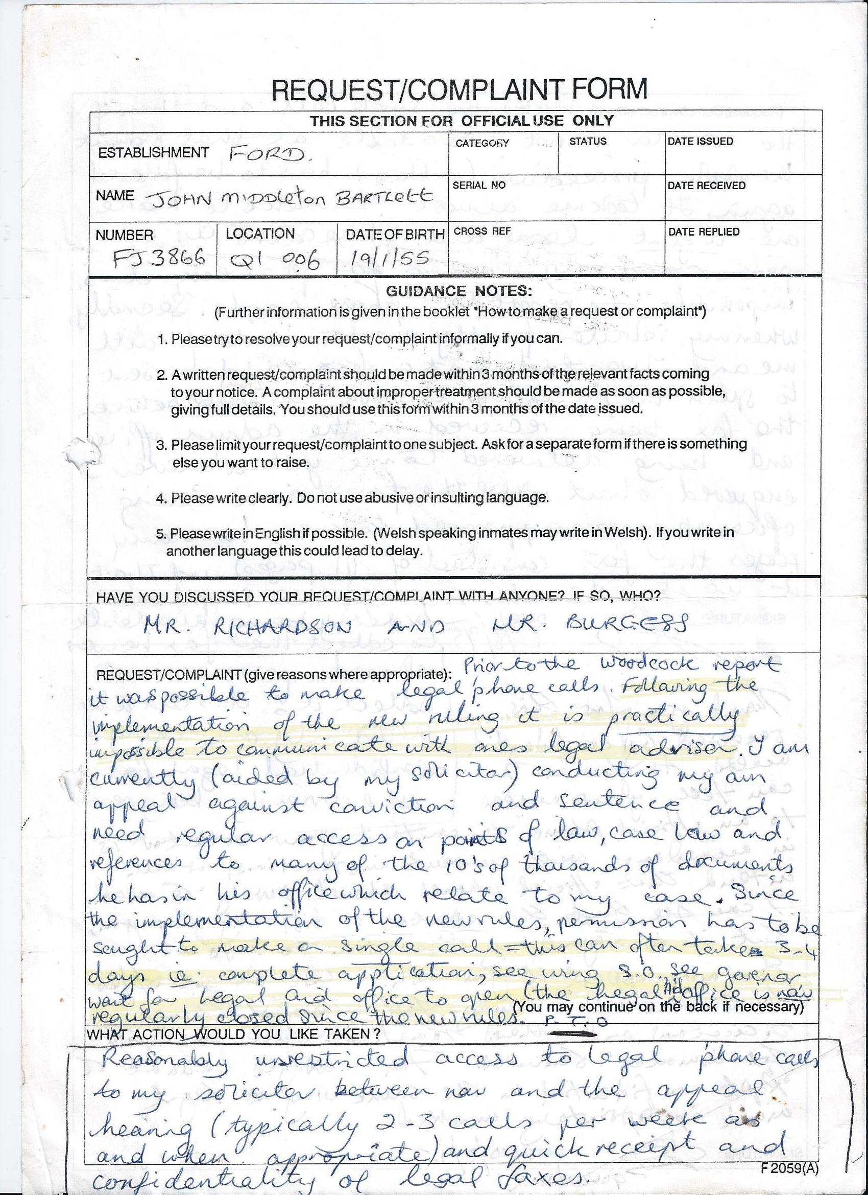 Below is my original “Complaint Form”… the one that went over the wall 18 months earlier!