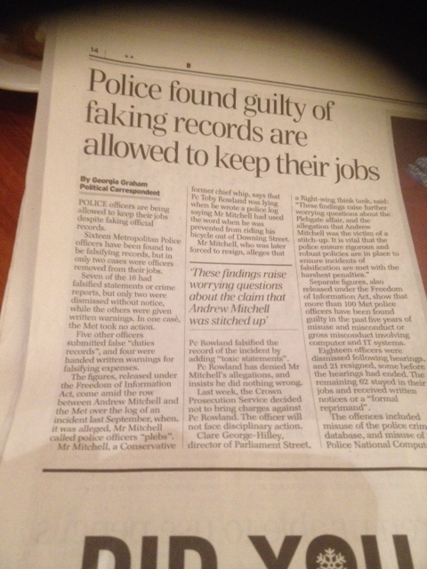 - A: I’m sure it’s not “officially” supposed to happen but it does, and VERY regularly. The Metropolitan Police (the force responsible for the “faked statements” in my case) are well known for setting up the accused in this way (link). It’s considered justifiable as it helps secure convictions and keeps costs down. But it’s not just the Met Police… it appears to happen throughout the UK’s police forces and is clearly unofficially endorsed by our justice system. Certainly in my case, the judge was fully aware of what the police had been up to but he refused to allow the jury to know, saying: “I will not have one bad word spoken against these fine officers in my court!” A quick Google will find hundreds of wrongly convicted people, often due to evidence having been fabricated by police.