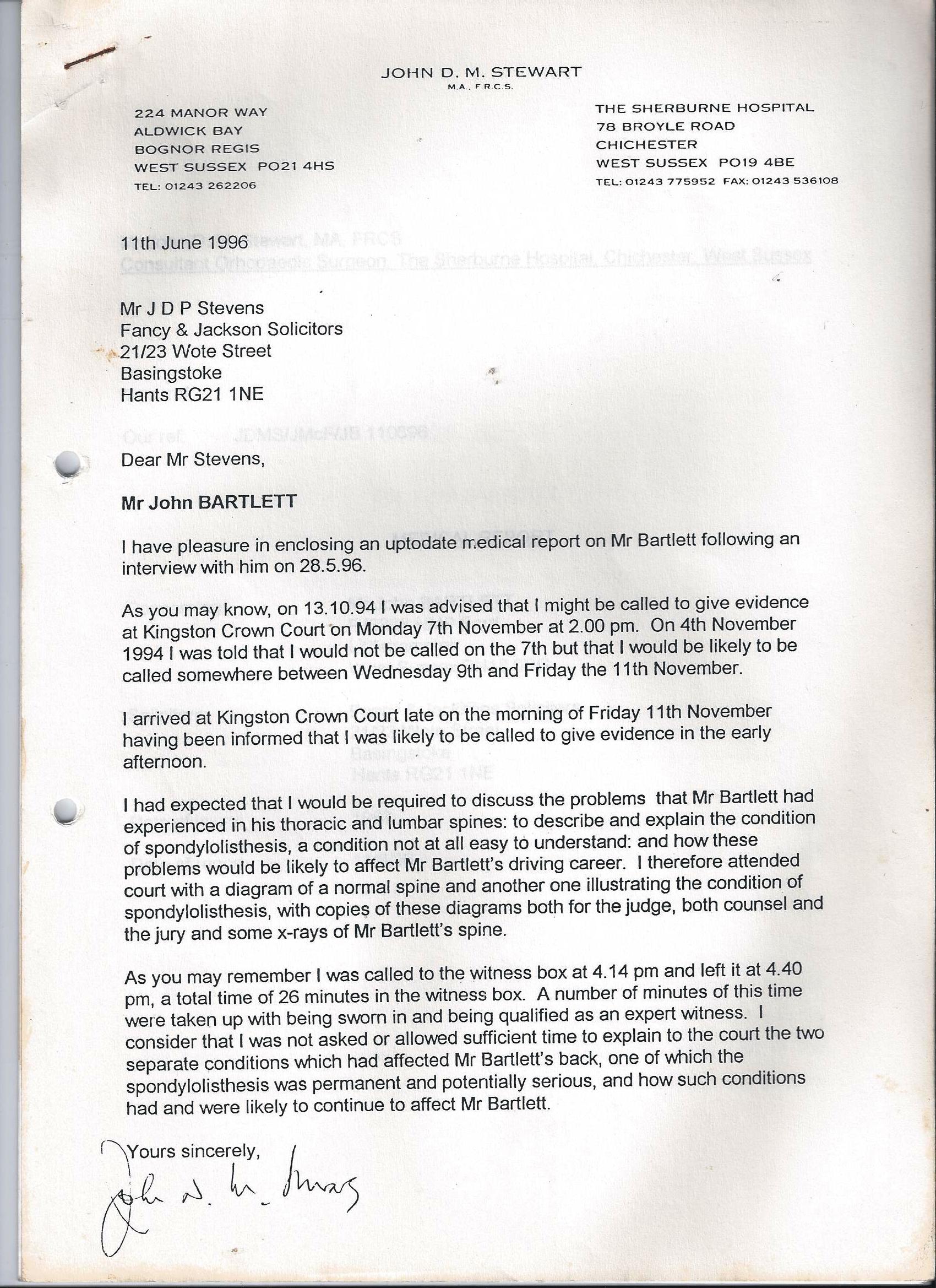 Official Court Transcripts. [*Names changed as appropriate]. JURY LEAVE - DEFENCE BARRISTER STANDS UP. DEFENCE BARRISTER (*Rabbit in Chequered Justice): Just one little point I did have, if you Honour will forgive me. Your Honour did refer in summing-up the evidence of *Mr Thompson to two problems Mr Bartlett received at Brands Hatch. The first was *Mr Bartlett’s neck and the second was that after the first heat *Rob Allan could not drive because he would have to start at the back of the grid. Your Honour, the note that I have is that he said there were two problems. He had a neck collar because of the G forces and he was in some pain with his back. Your Honour will recall that I referred to that in my closing. JUDGE: Yes. DEFENCE BARRISTER (*Rabbit in Chequered Justice): And clearly it is support, in my submission, for what Mr Bartlett says about him telling other people at Brands that he had a problem with his back. JUDGE:Let me just check. Is that in cross-examination? DEFENCE BARRISTER (*Rabbit in Chequered Justice): Yes, your Honour I think I did ask MR * to look at it but I know that he had another commitment and therefore has not had the opportunity to do so yet. Clearly, if you Honour wishes to reserve it until the morning, there is a little more time. JUDGE: Yes, my note is slightly different. I have got a reference in my note to a problem with my back, but that has got a query against it. DEFENCE BARRISTER (*Rabbit in Chequered Justice): The note that I have, and I rely, obviously, on my learned friend Mr * (Smythe in Chequered Justice), is two problems, colon. He had a neck collar because of the G forces and he was in some pain with his back. He did not want to do the second leg. *Rob Allan had not done the first heat and John Bartlett (*Will Middleton in Chequered Justice) had to do the second leg. *Rob Allan had to start at the back of the grid. It was no big thing. He mentioned to me about his back.Certainly on two occasions, then, reference to the back. I have it - the two problems, neck collar, pain with back. JUDGE: Yes. Can I read you my full note. “At Brands there was discussion as to whether he should drive the second heat and there were two problems. One was the neck collar and query some problem with his back. Secondly, he had qualified the car .” - I remember, I now remember that phrase, - “he’d qualified the car”........ PROSECUTING BARRISTER (*Smythe in Chequered Justice): “We were discussing at Brands Hatch whether Bartlett (*Will Middleton in Chequered Justice) could drive the second heat. Yes. I think he was using a neck collar and something. He hadn’t driven for a long time competitively. He didn’t want to do the second leg but as he qualified the car he had to do it. They were the rules for Interserie. Mabe he didn’t know the rules all that well. The back problem mentioned? No. JUDGE: Aah. Is it - “no by then” - or - “no big thing” - ? PROSECUTING BARRISTER (Smythe in Chequered Justice): No big thing was made of it specifically to me..... JUDGE: To give the jury a reminder of what *Mr Thompson has said about it would, I suspect, serve only to confuse at this stage because there are three different versions. It is really shading. PROSECUTING BARRISTER (Smythe in Chequered Justice): Yes, I have now found my note if it helps. It is absolutely on-line with the others. - “No big thing was made about the back to me. John Bartlett (*Will Middleton in Chequered Justice) was very much involved in the pits. Your Honour, I found a note of mine before that. - “He was wearing a neck collar because of the G forces and he had not driven for a long time and I believe he was in some pain in his back” - is my note. JUDGE: Aah. - “I believe he was in some pain”? PROSECUTING BARRISTER (*Smythe in Chequered Justice): Yes and believe in - well to read it word for word rather than adding my gloss - “and believe in some pain in his back.....” - Well, actually the further one goes back into the note, the more it may help. - “John Bartlett (*Will Middleton in Chequered Justice) span off in one race and as a result came ninth. At Brands Hatch there was discussion as to whether he could drive a second heat. That was partly related to the back He was wearing a neck collar because of the G forces” - and then we go back into the point where I got my note. Yes, I think my note is slightly fuller than my learned junior’s on that particular point, which is unusual JUDGE: I am minded to leave the matter where it is.