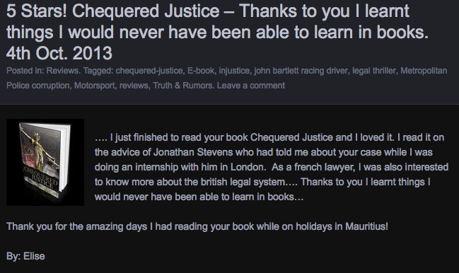 Chequered Justice has, since then, been positively reviewed by many other legal professionals (Review below is from a French Barrister):