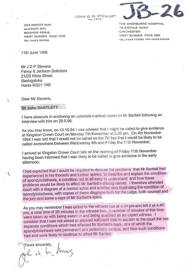 Spinal Surgeon, John Stewart complains his evidence was restricted by trial judge Share this: Click to share on X (Opens in new window) X Click to share on Facebook (Opens in new window) Facebook Click to email a link to a friend (Opens in new window) Email Like Loading...